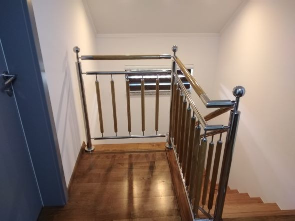 Izrada i montaža inox ograde u kombinaciji s drvenim rukohvatom.