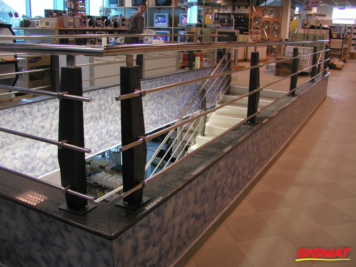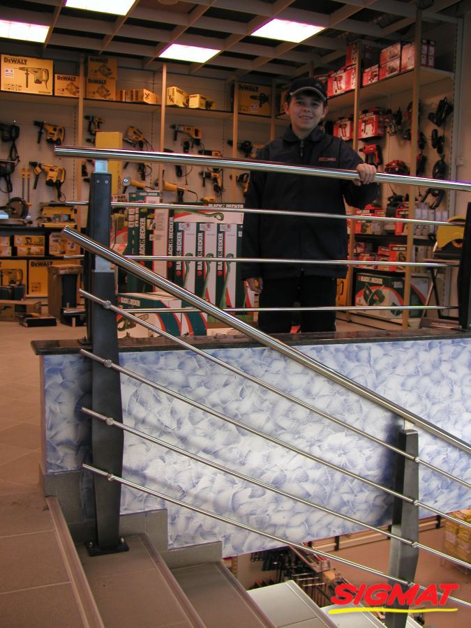 An der Stange befinden sich Halterungen für Rohre mit einem Durchmesser von 12 mm oder 14 mm, während der Durchmesser des Griffs 40 mm beträgt.