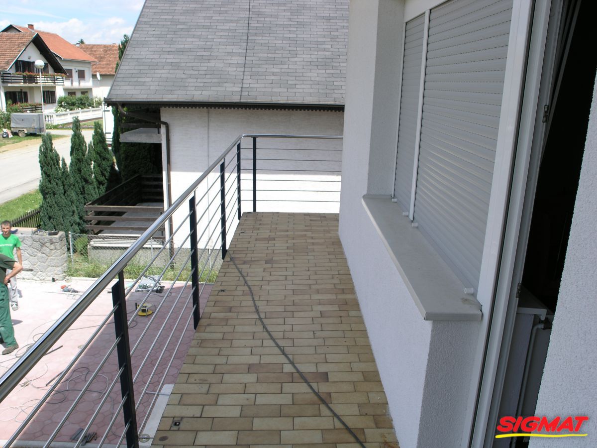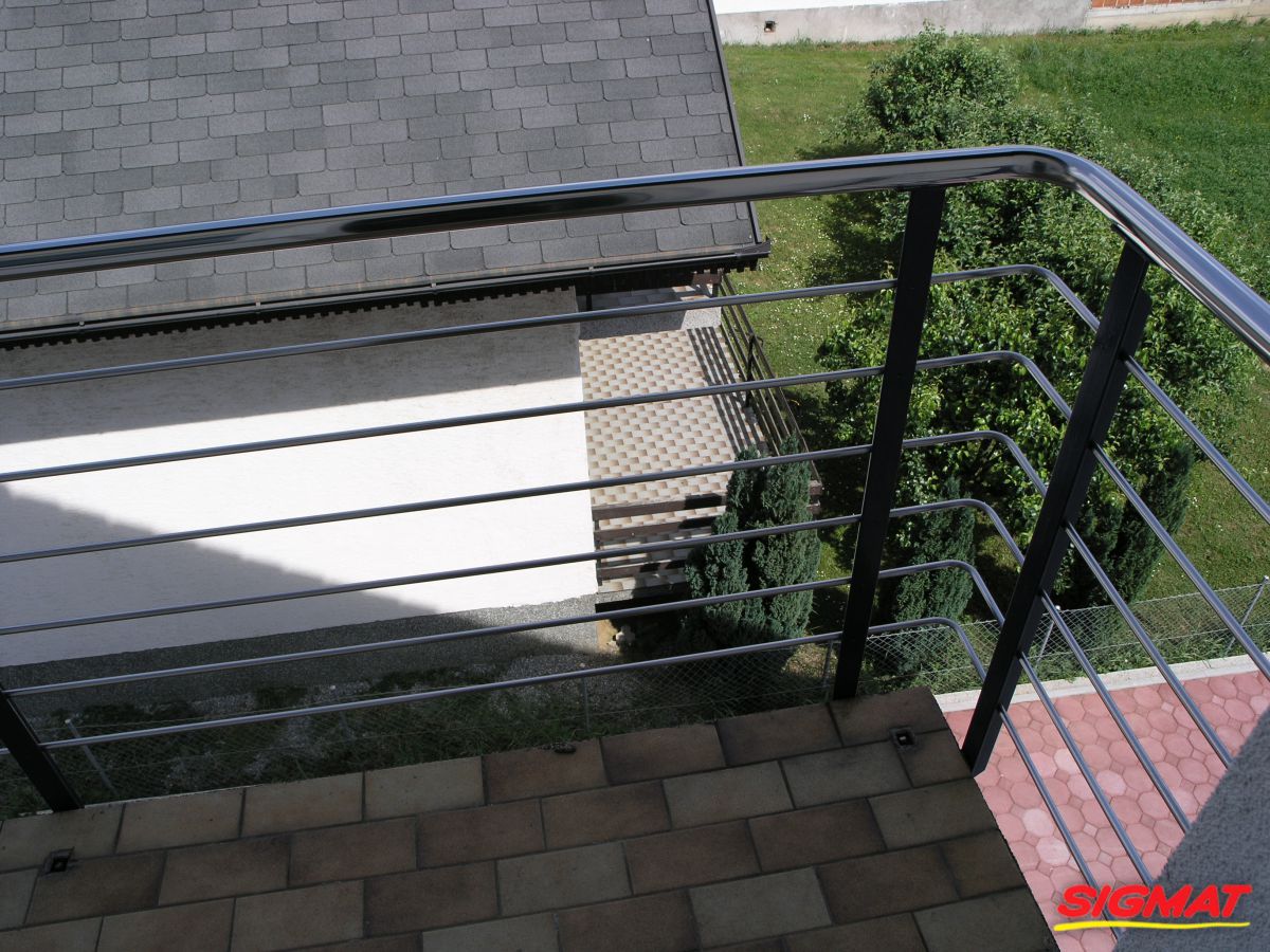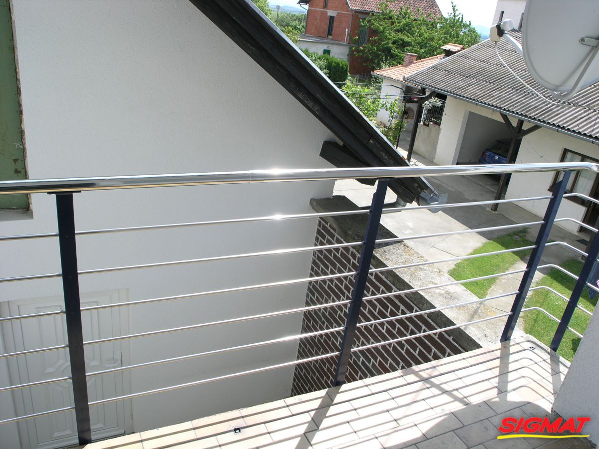 Kutjevo Haus Balkon Edelstahlzäune Edelstahlzaun aus Edelstahl.Sie bestehen aus dünneren Röhren mit regelmäßiger Anordnung entlang der Säule.Der Griff ist ein Rohr, das an den unteren Profilstangen für die Pfosten befestigt ist.* sowohl in AISI 316 als auch in AISI 304 möglich Zurück Weiter