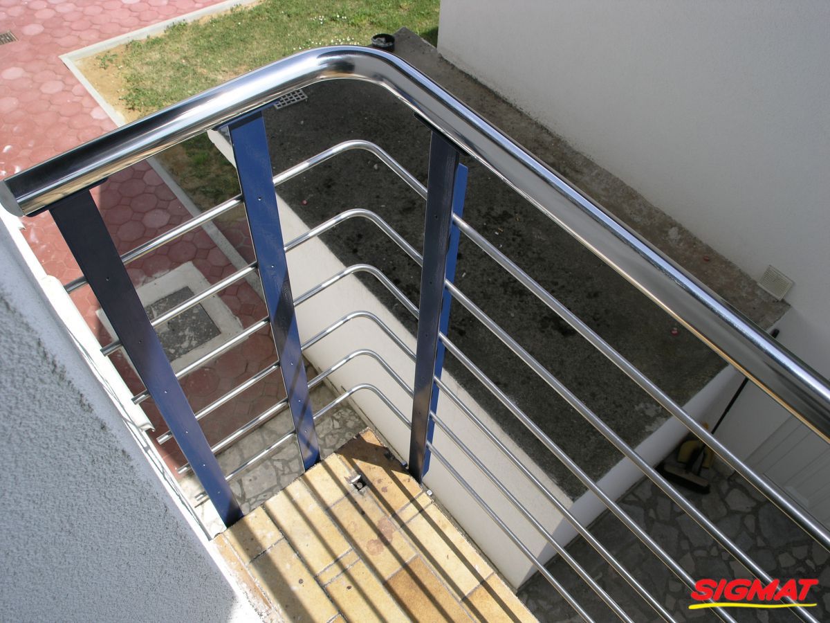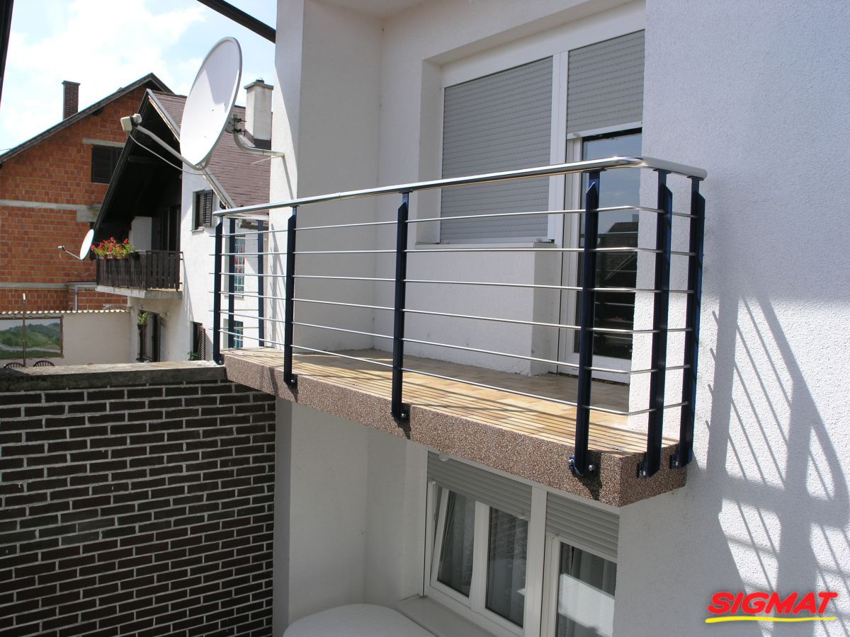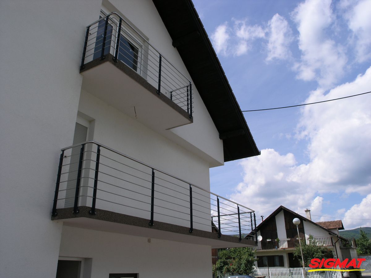Kutjevo Haus Balkon Edelstahlzäune Edelstahlzaun aus Edelstahl.Sie bestehen aus dünneren Röhren mit regelmäßiger Anordnung entlang der Säule.Der Griff ist ein Rohr, das an den unteren Profilstangen für die Pfosten befestigt ist.* sowohl in AISI 316 als auch in AISI 304 möglich Zurück Weiter