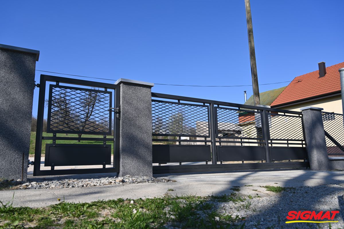 Kapija Roko Klizne kapije Elegantna kapija izrađena od čeličnih cijevi, pocinčana i plastificirana. Ispuna kapije od istegnutog aluminijskog lima. Predviđena za ulazna vrata u dvorište. Moguća izvedba u krilnoj i kliznoj varijanti. Sljedeće