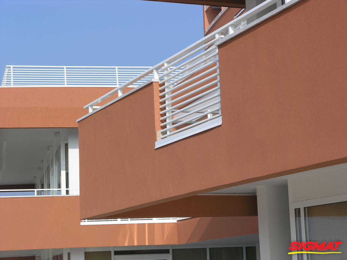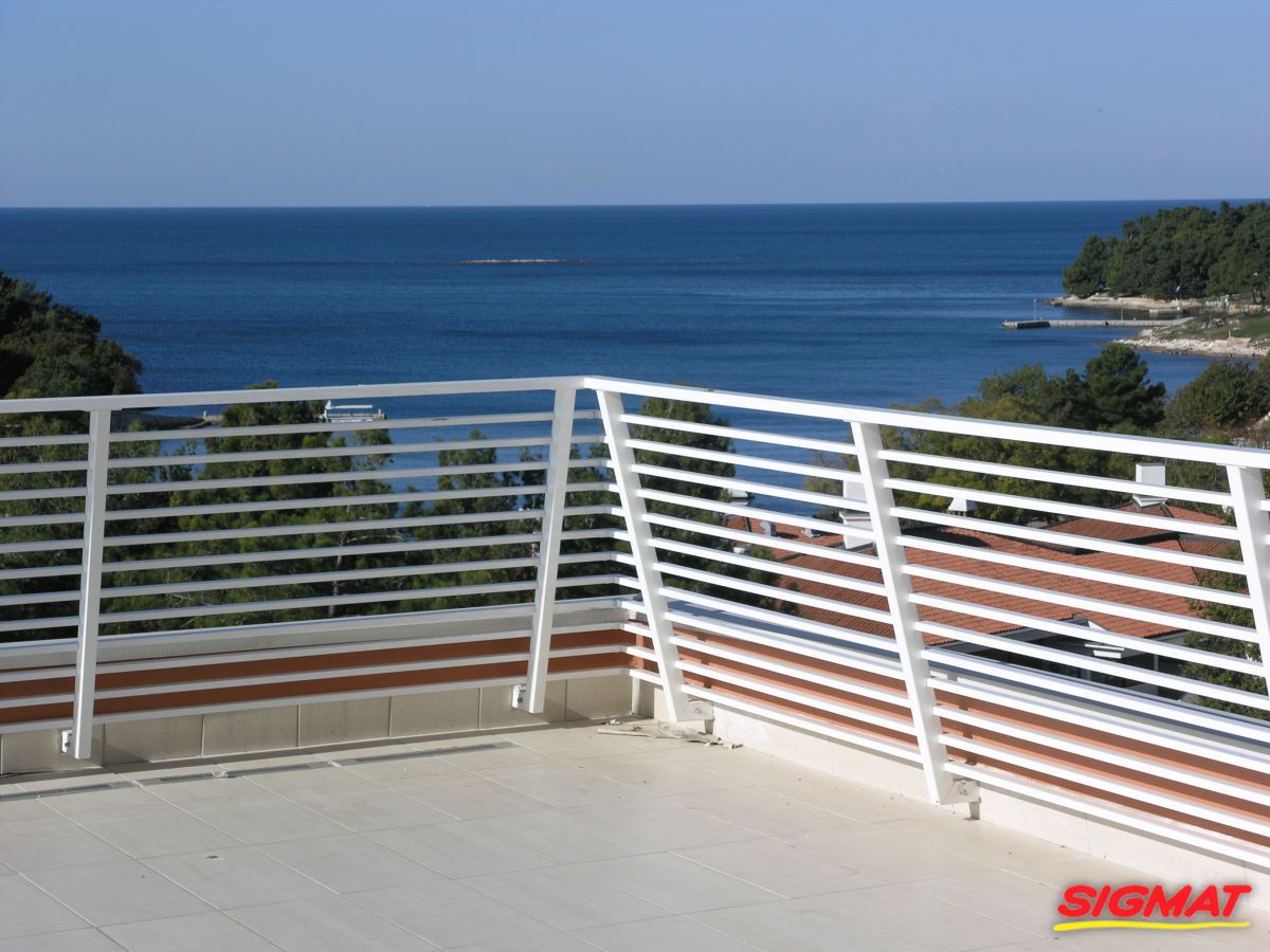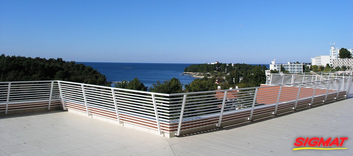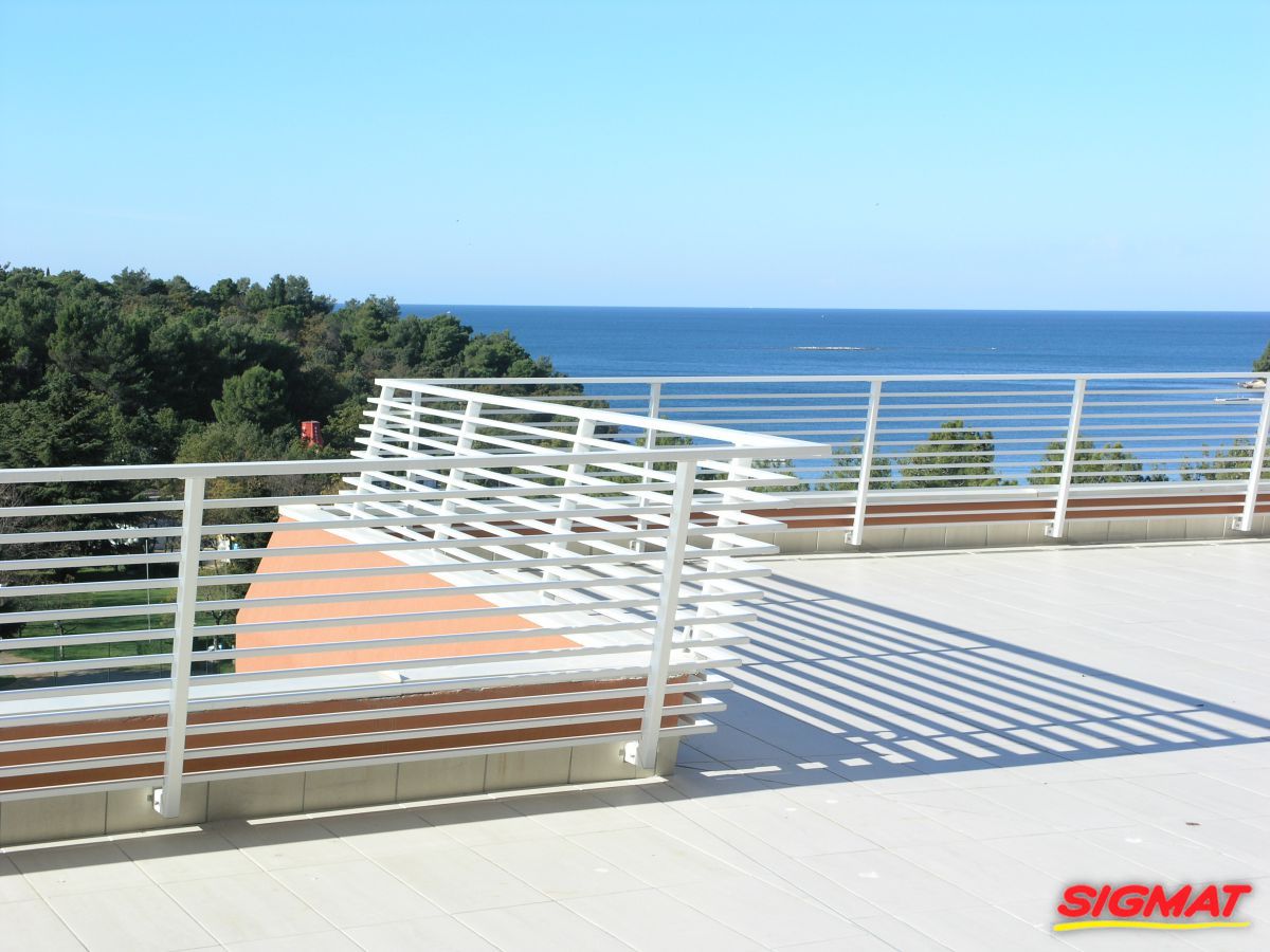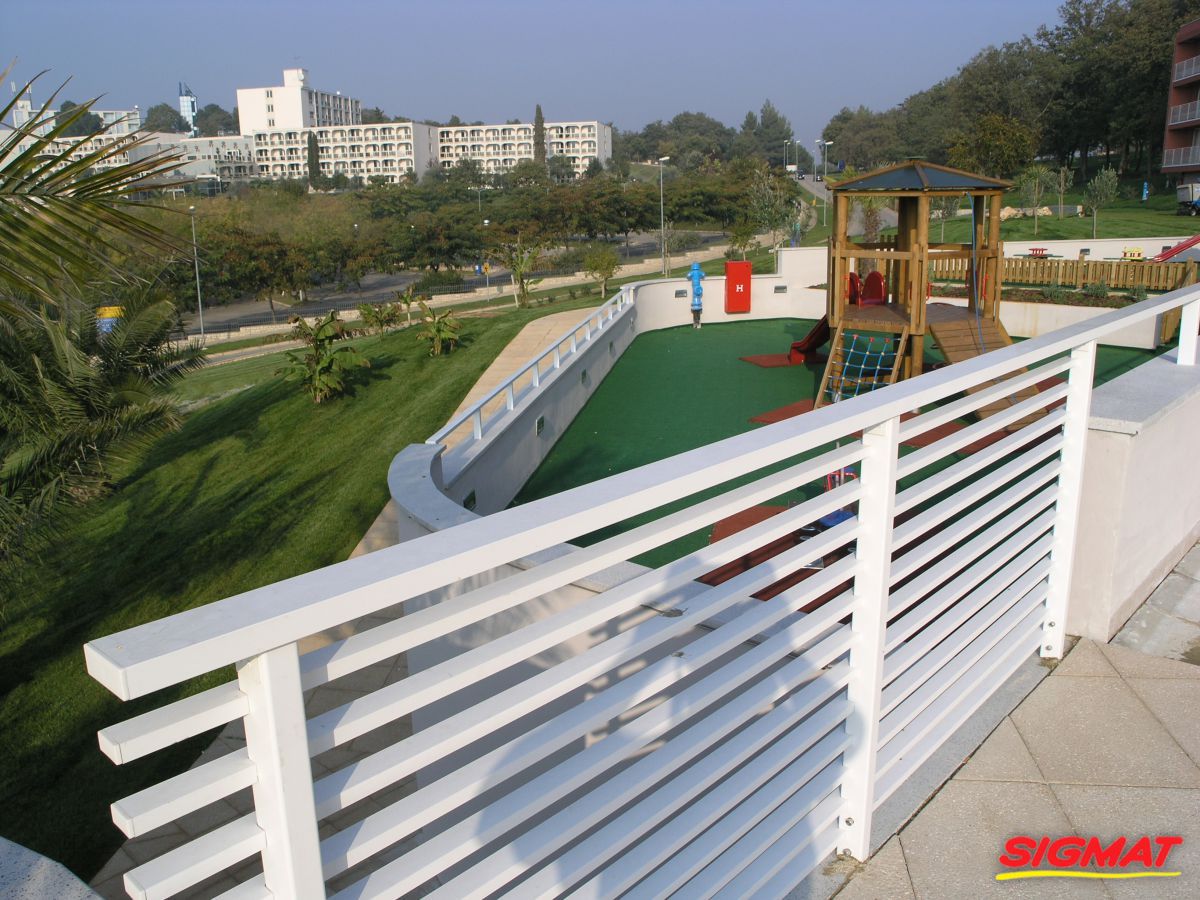 Albatros Aluminijske ograde Balkon Hoteli Aluminijska plastificirana ograda, boja po želji. Posebnu atraktivnost ovom modelu daje čak 12 horizontalnih ispuna. Staklena ograda visine je jednoga metra. Sljedeće