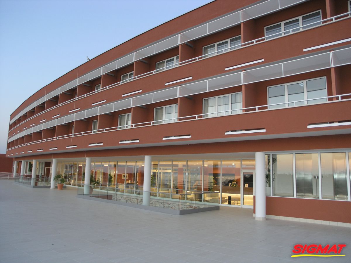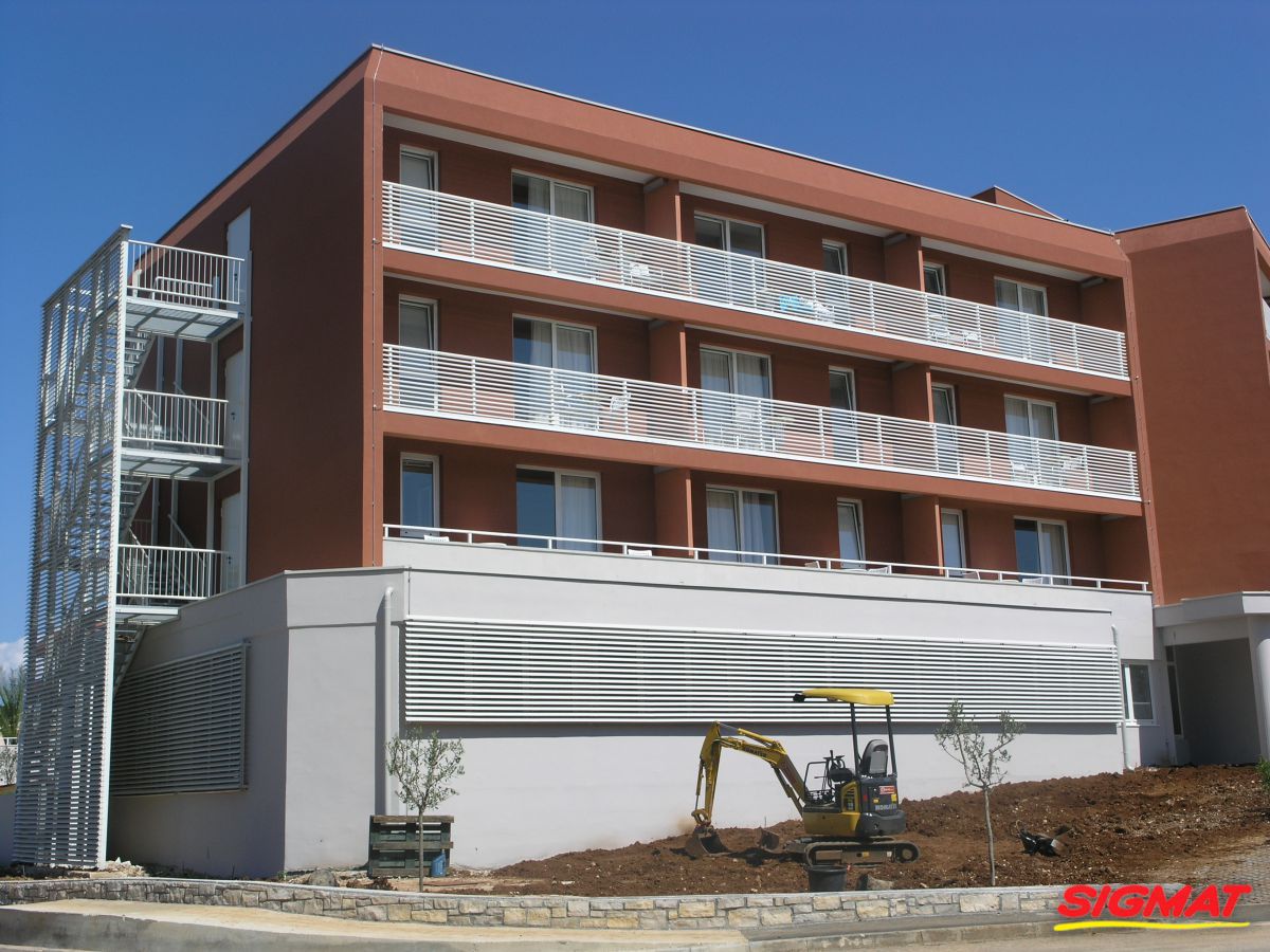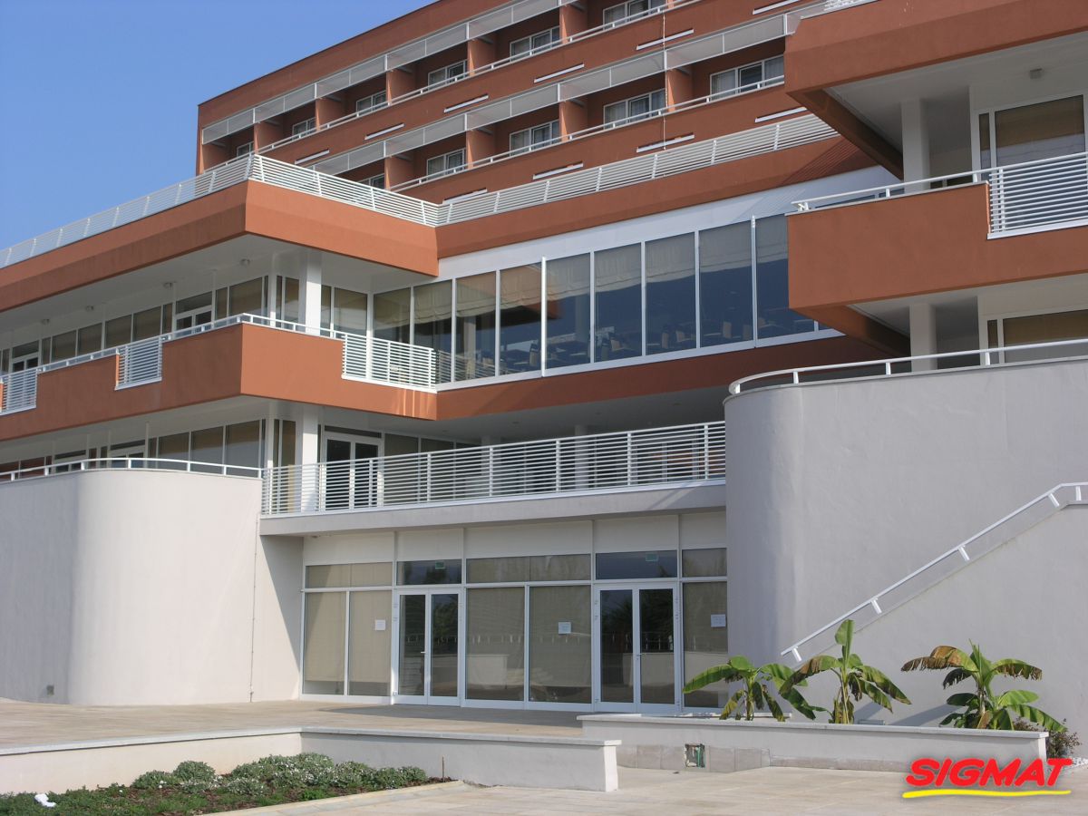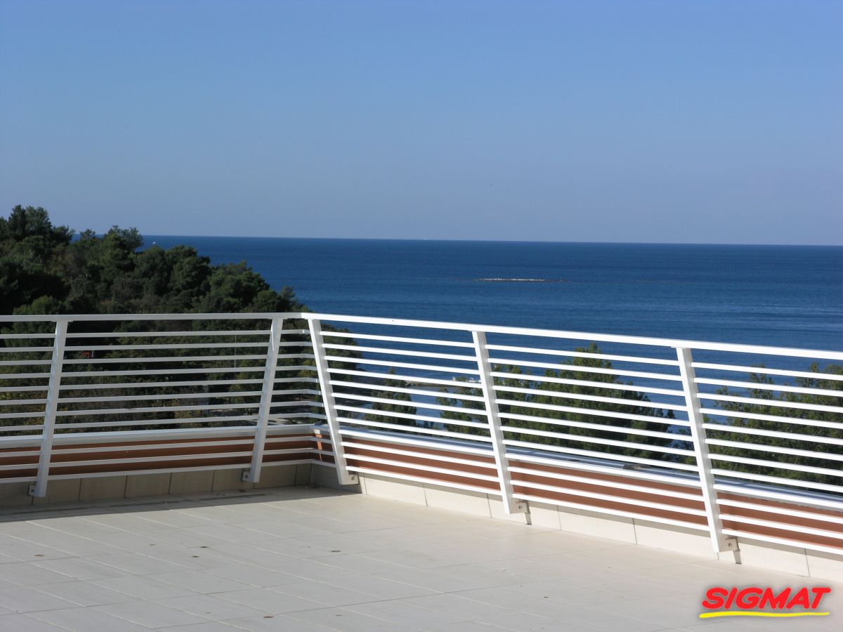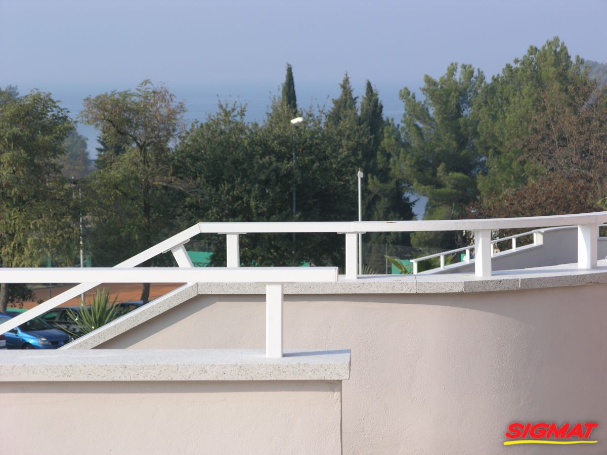 Albatros Aluminijske ograde Balkon Hoteli Aluminijska plastificirana ograda, boja po želji. Posebnu atraktivnost ovom modelu daje čak 12 horizontalnih ispuna. Staklena ograda visine je jednoga metra. Sljedeće