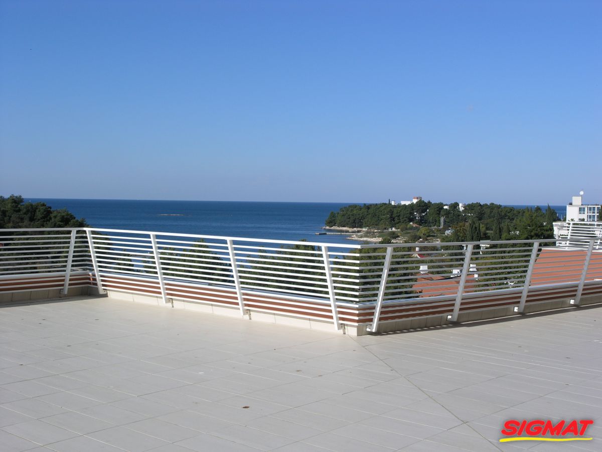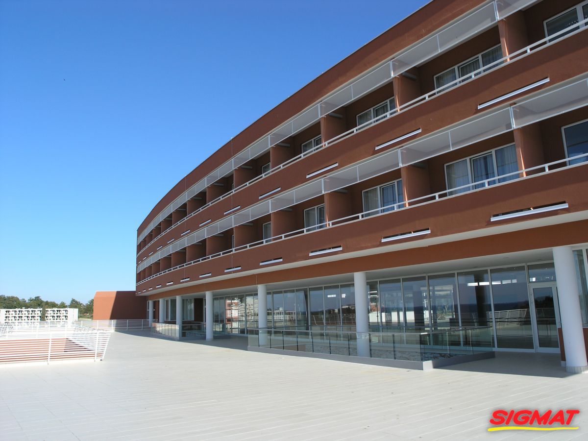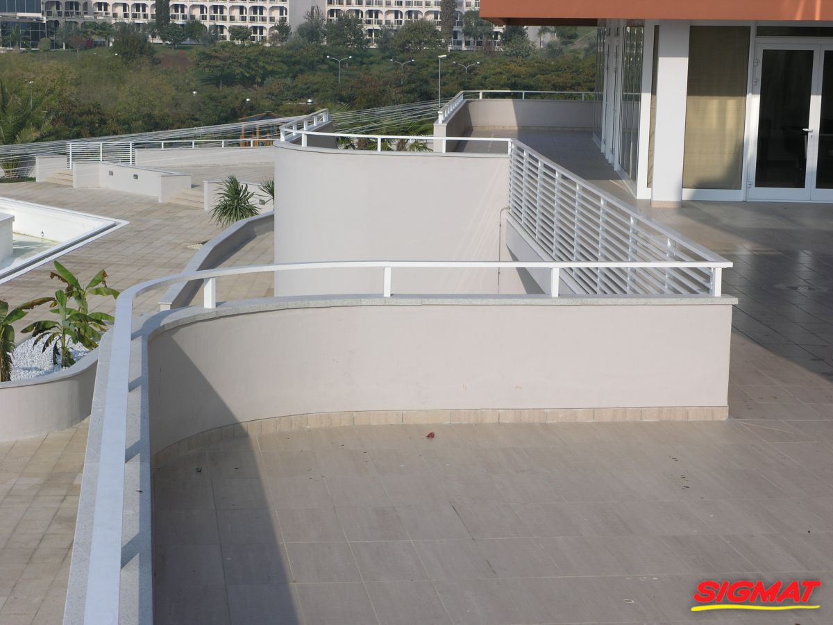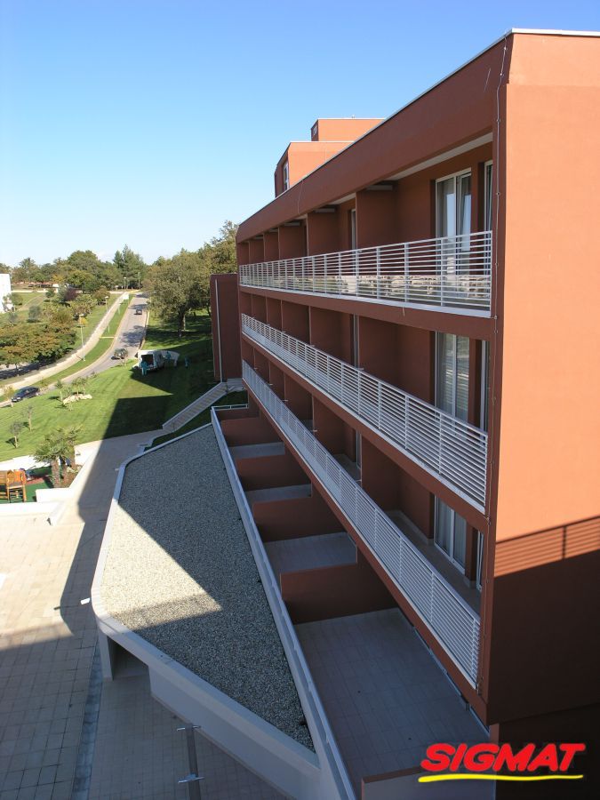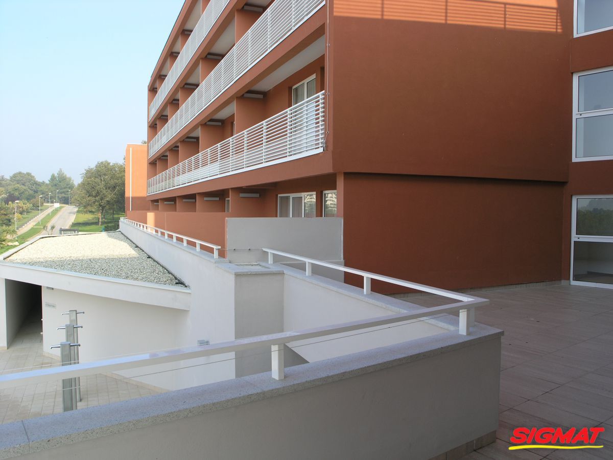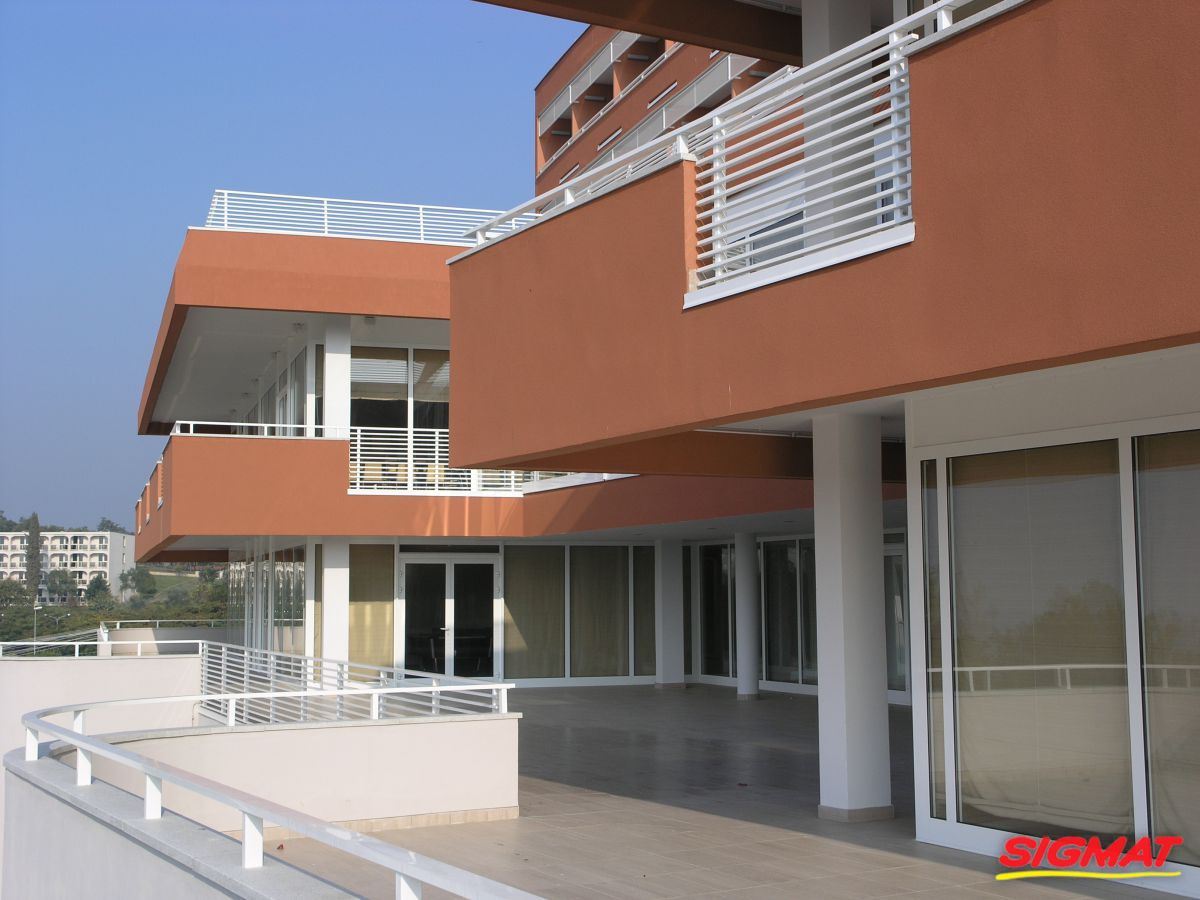 Albatros Aluminijske ograde Balkon Hoteli Aluminijska plastificirana ograda, boja po želji. Posebnu atraktivnost ovom modelu daje čak 12 horizontalnih ispuna. Staklena ograda visine je jednoga metra. Sljedeće