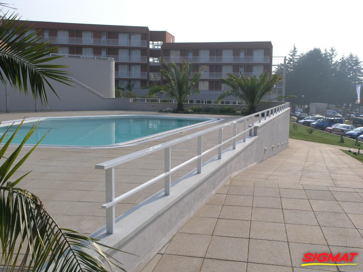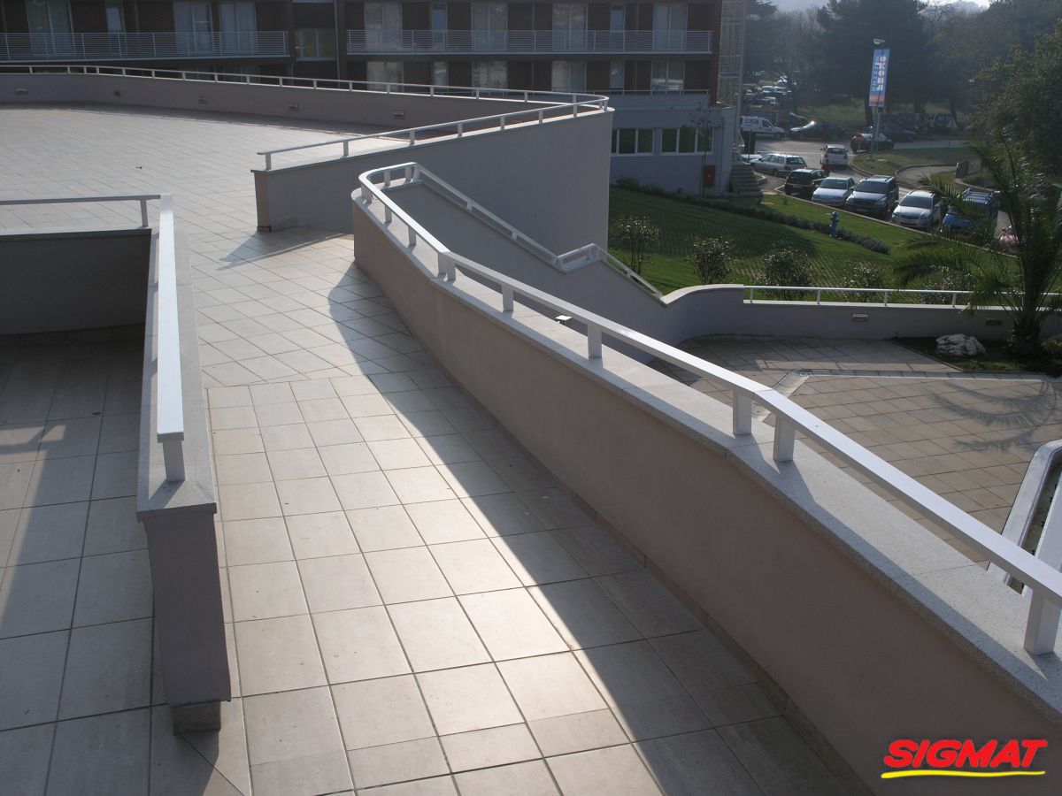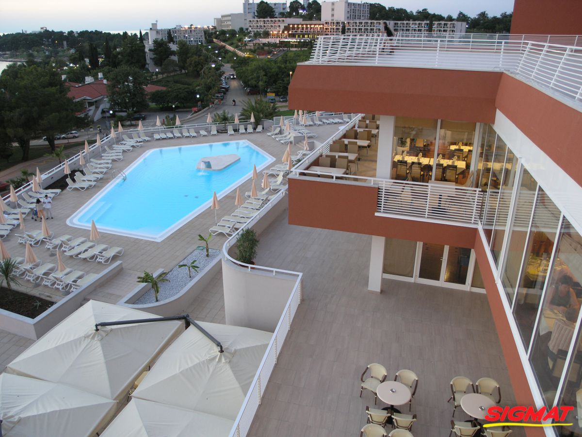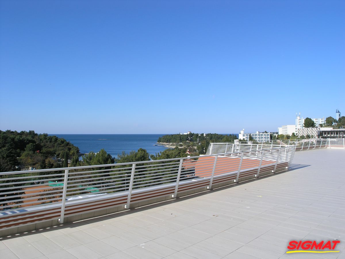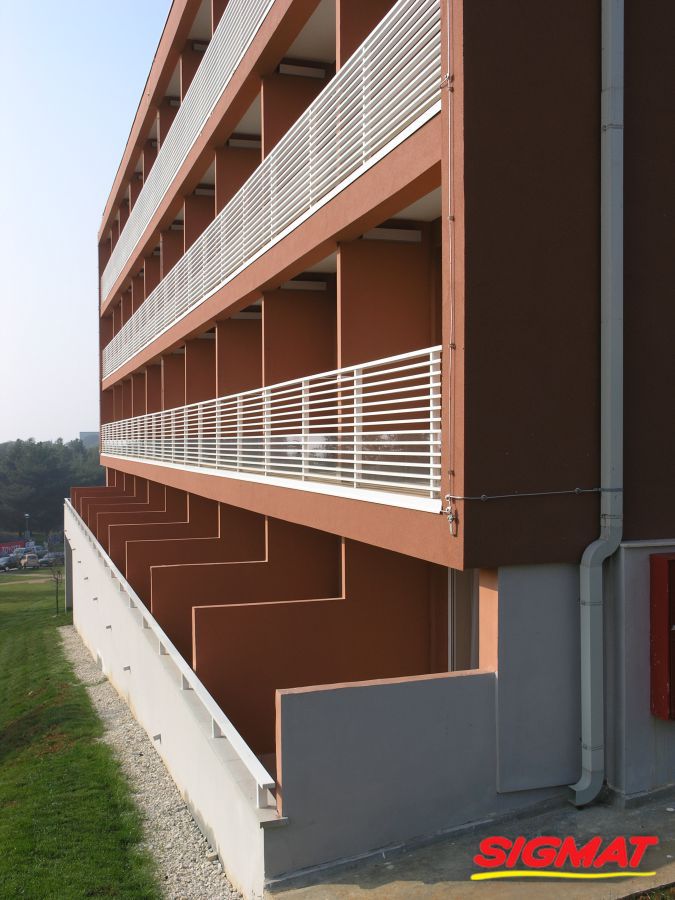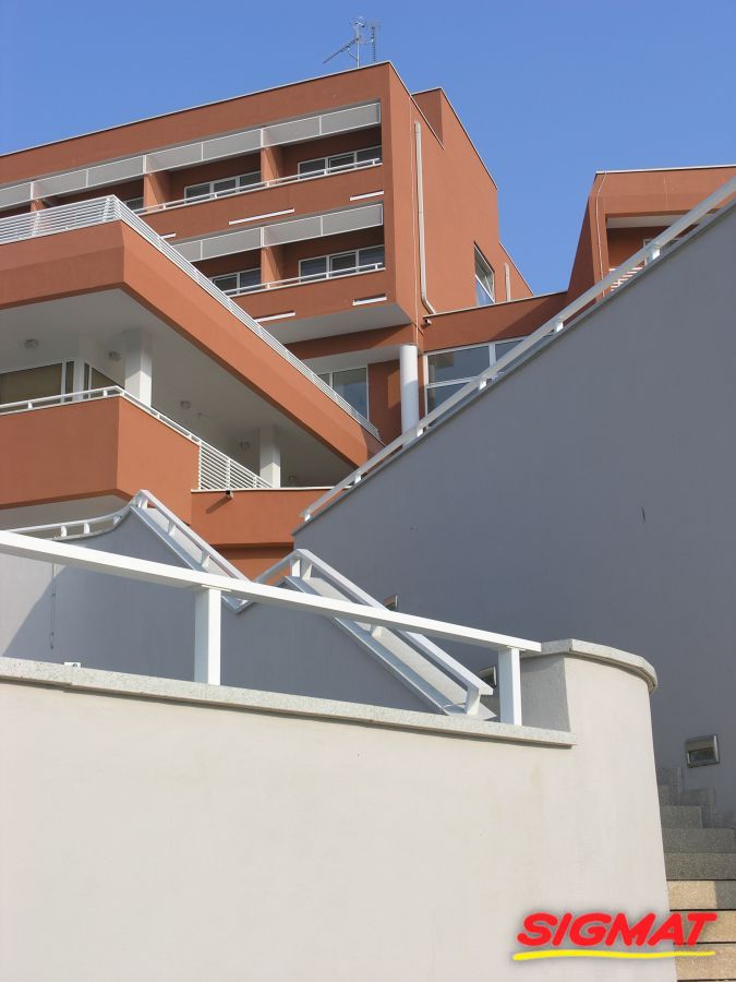 Albatros Aluminijske ograde Balkon Hoteli Aluminijska plastificirana ograda, boja po želji. Posebnu atraktivnost ovom modelu daje čak 12 horizontalnih ispuna. Staklena ograda visine je jednoga metra. Sljedeće