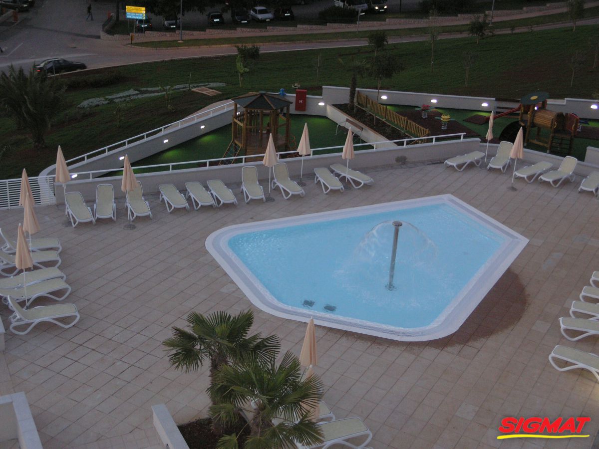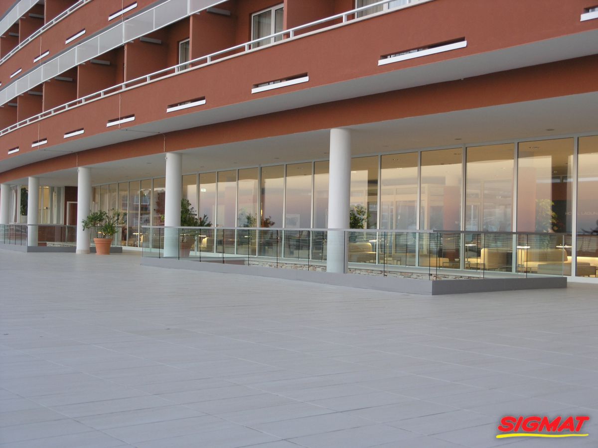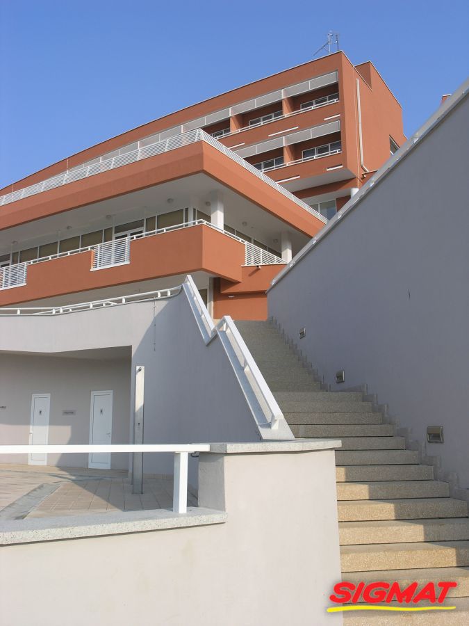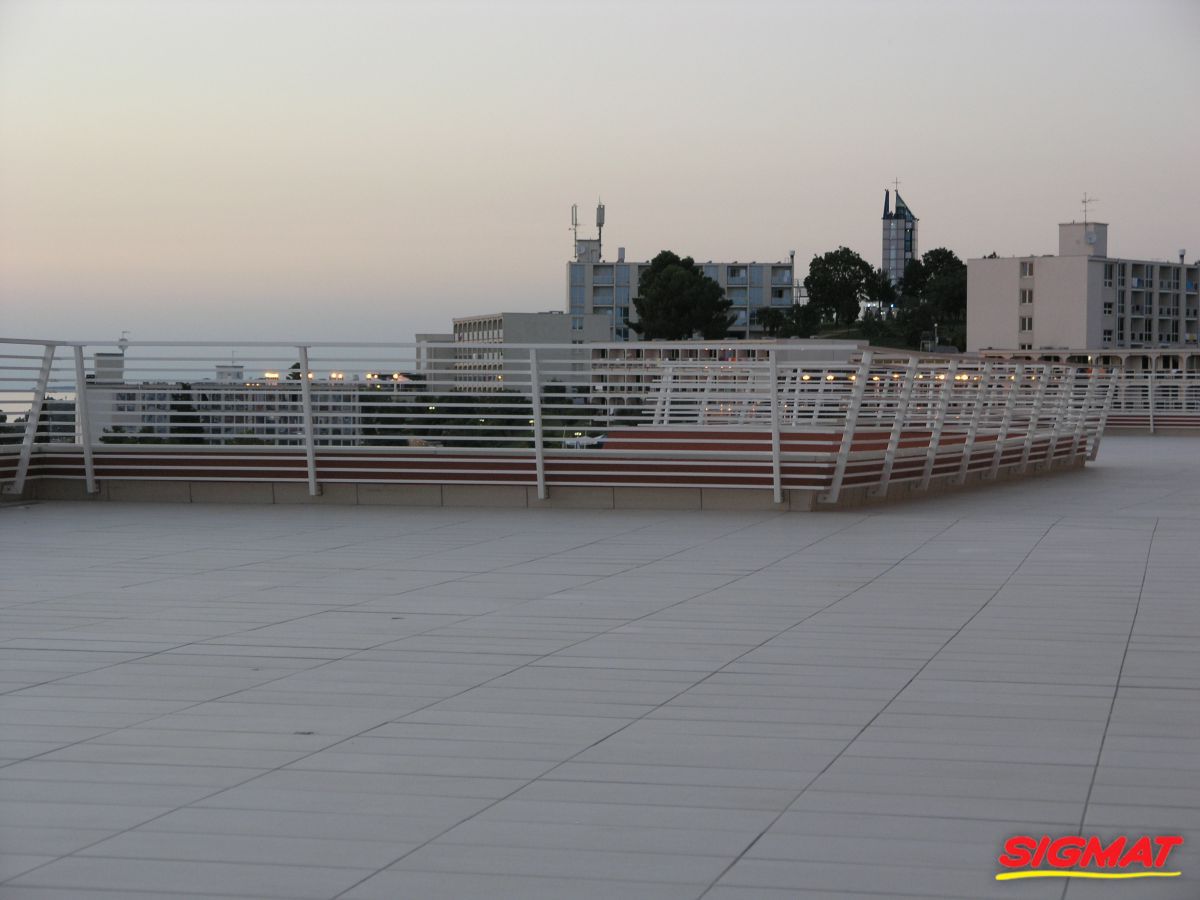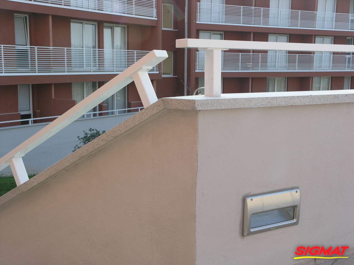 Albatros Aluminijske ograde Balkon Hoteli Aluminijska plastificirana ograda, boja po želji. Posebnu atraktivnost ovom modelu daje čak 12 horizontalnih ispuna. Staklena ograda visine je jednoga metra. Sljedeće