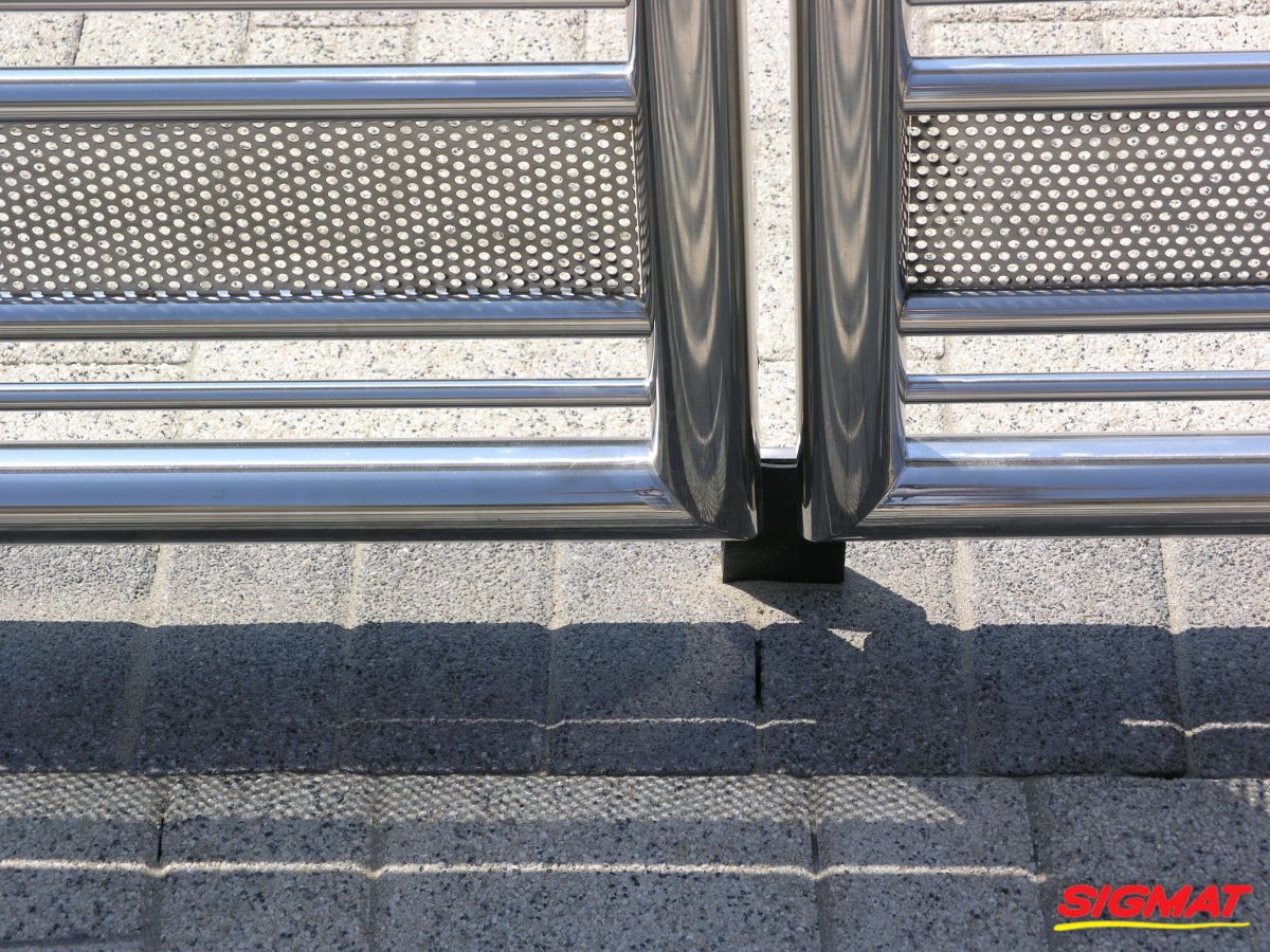 Nives Kuća Inox kapije Inox ograde Inox (prokrom) ograda posebnog dizajna i masivnog izgleda.Okvir su od okrugle cijevi.Ispune su od cijevi manjeg profila između kojih se nalazi perforirani lim, a na tim istim cijevima se nalaze Inox okviri. Prethodno Sljedeće