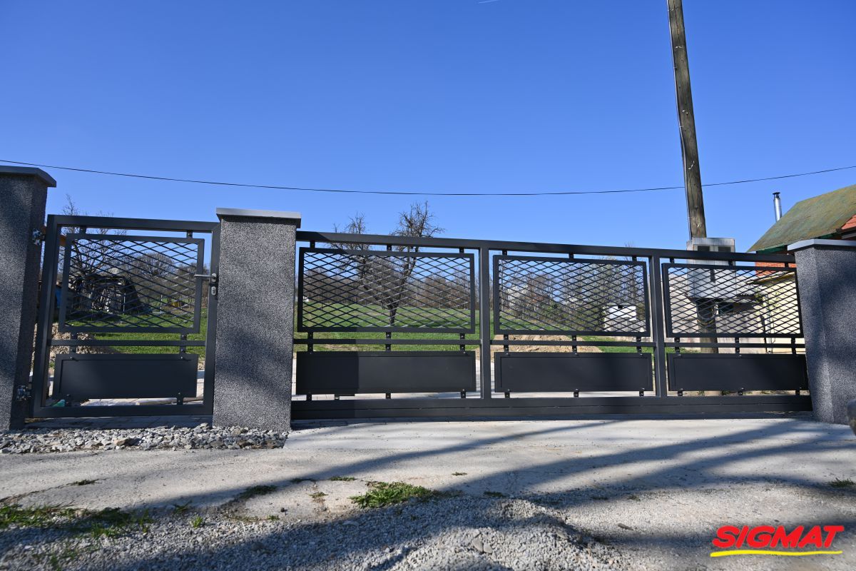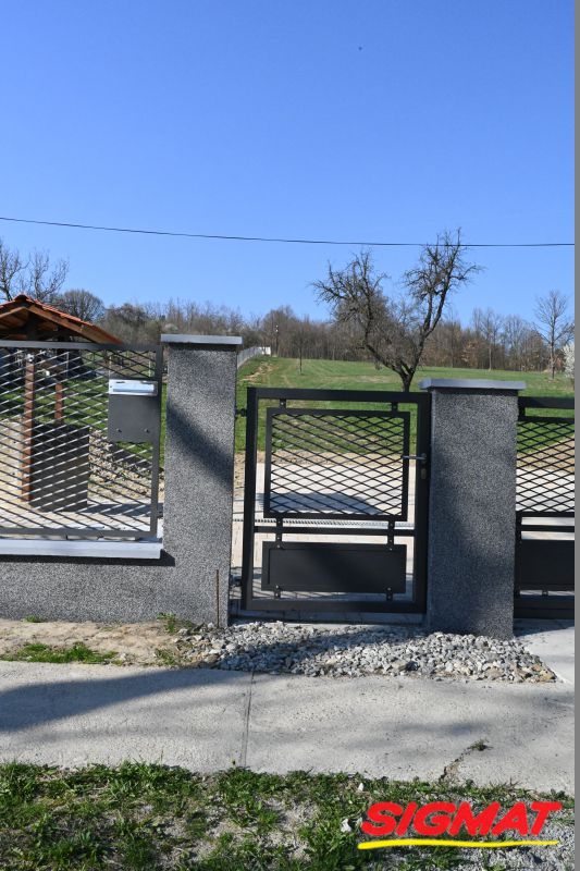 Kapija Roko Klizne kapije Elegantna kapija izrađena od čeličnih cijevi, pocinčana i plastificirana. Ispuna kapije od istegnutog aluminijskog lima. Predviđena za ulazna vrata u dvorište. Moguća izvedba u krilnoj i kliznoj varijanti. Sljedeće