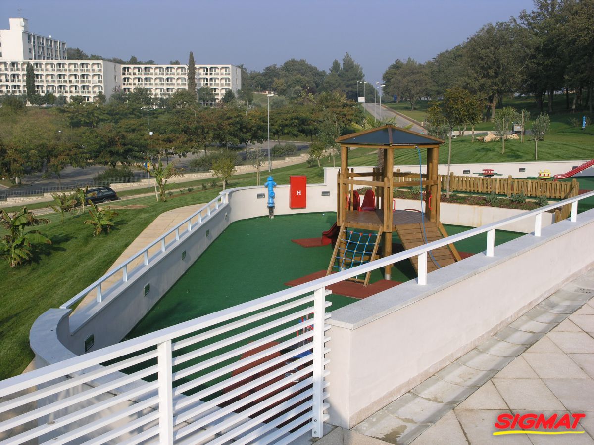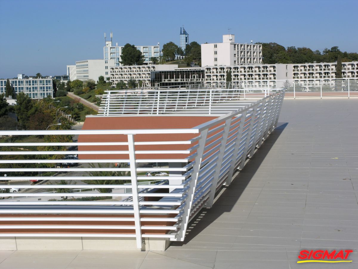 Albatros Aluminijske ograde Balkon Hoteli Aluminijska plastificirana ograda, boja po želji. Posebnu atraktivnost ovom modelu daje čak 12 horizontalnih ispuna. Staklena ograda visine je jednoga metra. Sljedeće