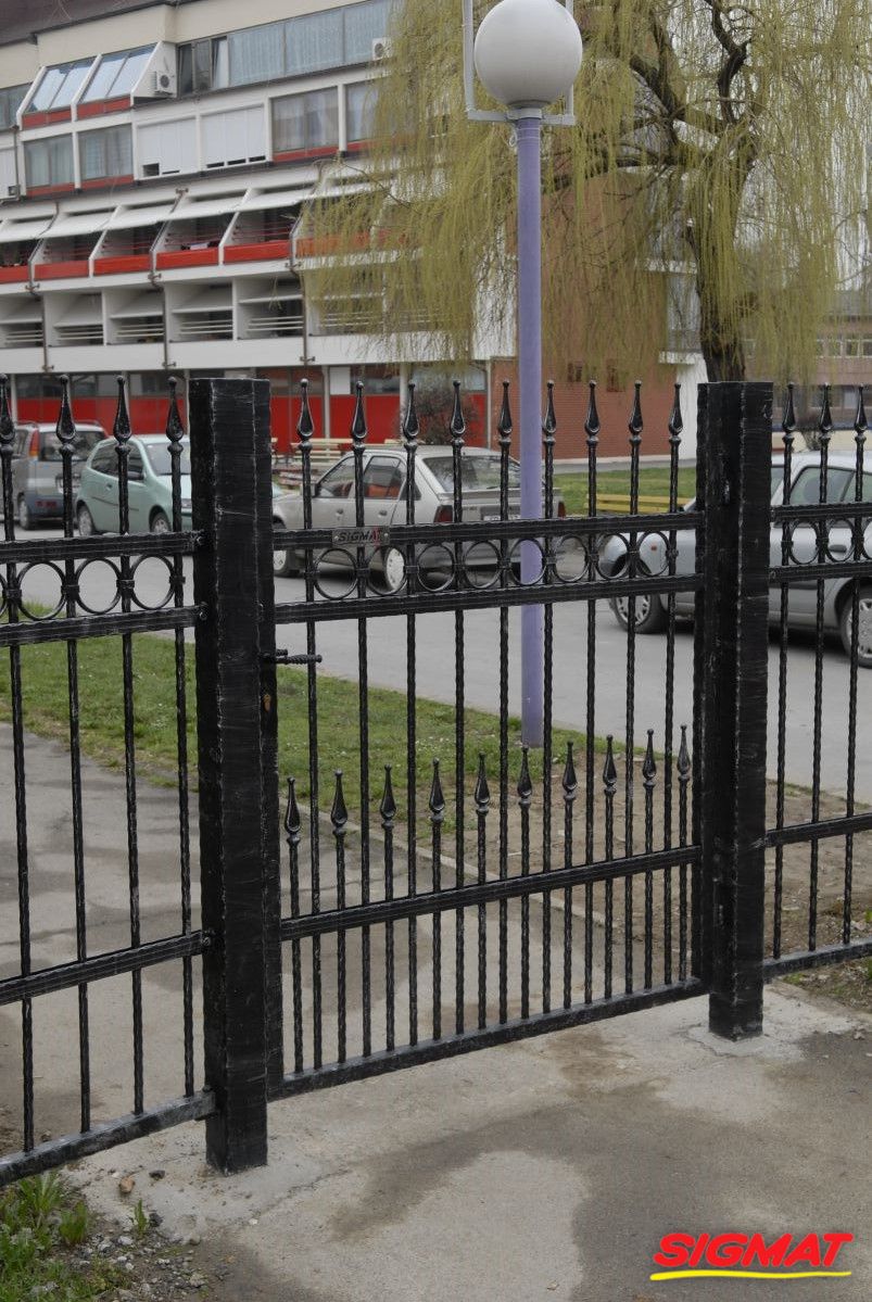 Stjepan Kovane ograde Poslovni prostori Klizne kapije Kovane kapije Jednostavna kovana ograda s kružnim elementima i vrhovima. Moguća izvedba s pocinčavanjem za dugotrajnu zaštitu. Boja po izboru. Prethodno Sljedeće